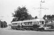Начало 60-х. Трамвайная линия уже перешита, но сохранилось здание бельгийской остановки, которое проживет еще 1 год - оно стоит как раз в створе ул. Черняховского. | |