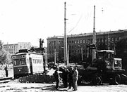 | А вот так выглядела в 1961 г. нынешняя пл. 10 Апреля - полным ходом идет перешивка трамвайной линии и постройка троллейбусной. 1961 г. |