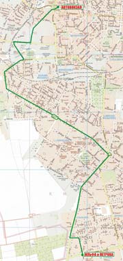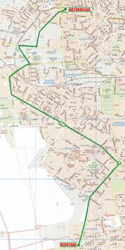 Автовокзал - Бугаевская - Дальницкая - Сапожникова - Ивановский путепровод - Щорса - Ак. Филатова - пл. Толбухина - Люстдорфская дорога - Комарова - 25-й Чапаевсой дивизии - Ак. Королева |