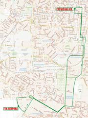 Александровский просп. - Бунина (обратно Жуковского) - Екатерининская - Старосенная пл. - Водопроводная - Люстдорфская дорога - Космонавтов - Ак. Филатова - Рабина - Генерала Петрова |