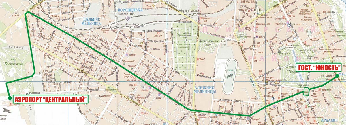 Аэропорт "Центральный - Центральный Аэропорт - Гастелло - Щорса - Кордонная - Малиновского - Адмиральский просп. - Черняховского - Пионерская - Гостиница "Юность"