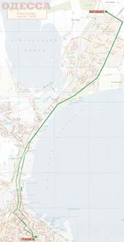 Греческая пл. - Бунина - Коблевская - Торговая - Пастера - Ольгиевская - Селянский сп. (обратно Херсонский сп. - Пастера - Преображенская) - Московская (обратно Бажакина) - Николаевская дорога - просп. Добровольского - Ак. Заболотного |