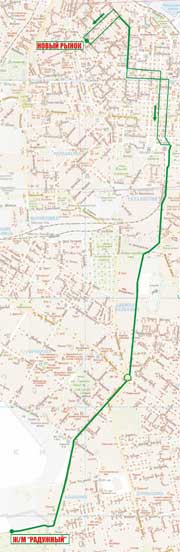 Новый Рынок - Нежинская - Торговая - Софиевская - Преображенская - Бунина - Ришельевская - Судебный пер. - Привокзальная пл. - Среднефонтанская - Краснова - Люстдорфская дорога - Комарова - просп. Маршала Жукова - Левитана - Жилмассив "Радужный" |