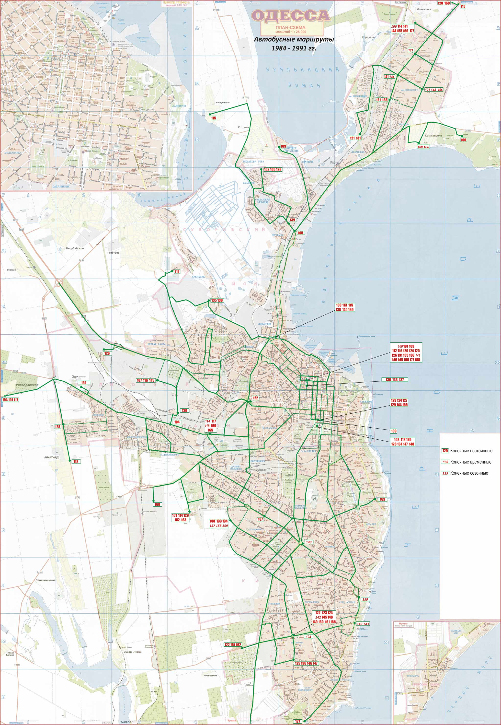 В таблице приведены все автобусные маршруты г. Одессы, начиная с середины 80-х годов. |