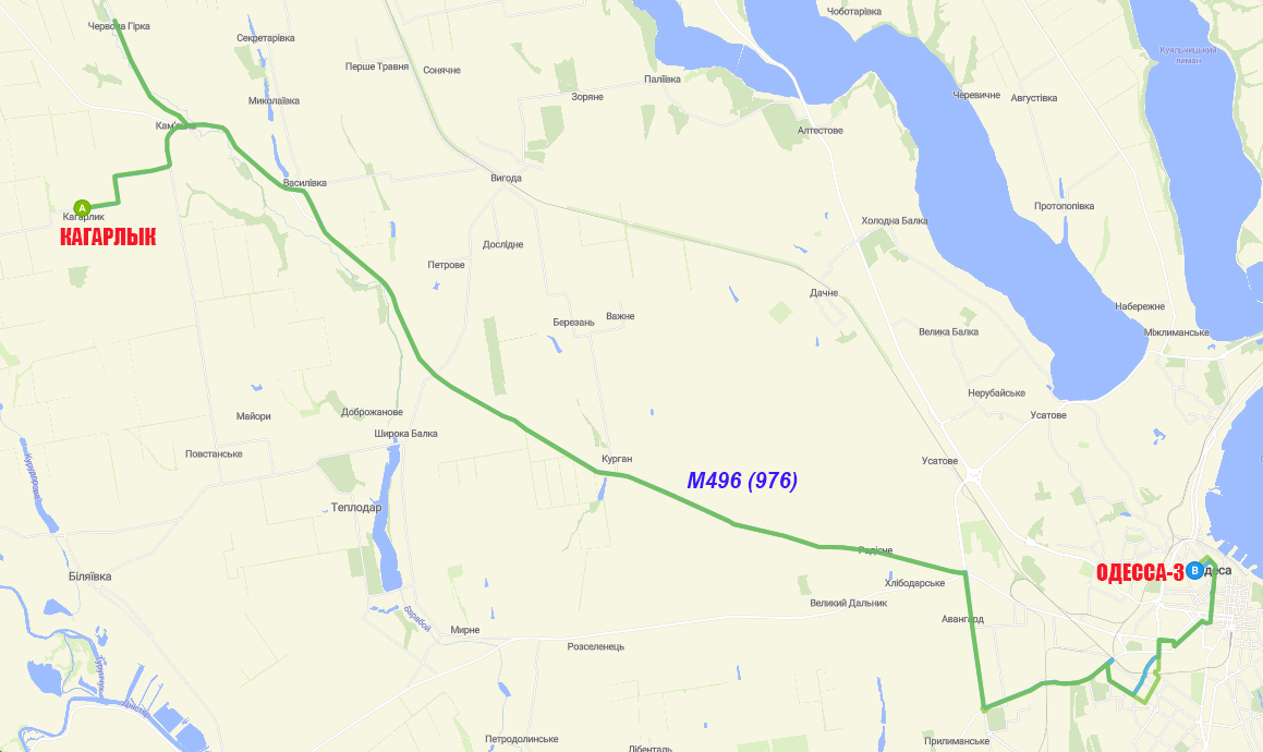 Одесса-3 (112426) - Тираспольская пл. (357) - Кинотеатр "Родина" (9289) - Мельничная (111754) - Селекционный институт (8639) - Промрынок 7-й км. (111431) - Авангард (111008) - Два столба (111782) - Радостное (112393) - Дальник-1 (112386) - Курган (111839) - Васильевка (112470)- Каменка (112274) - Красная Горка (113250) - Кагарлык (112276) | |