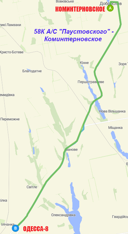 | 58K | Одесса-8 (111308) - Таврия-В "Суворовский" (108310) - ТЦ "Новая Линия" (111310) - Курган Славы (111322) - Свердлово (112004) - Ольшанка (112009) - Первомайское (112419) - Коминтерновское (112416) | |