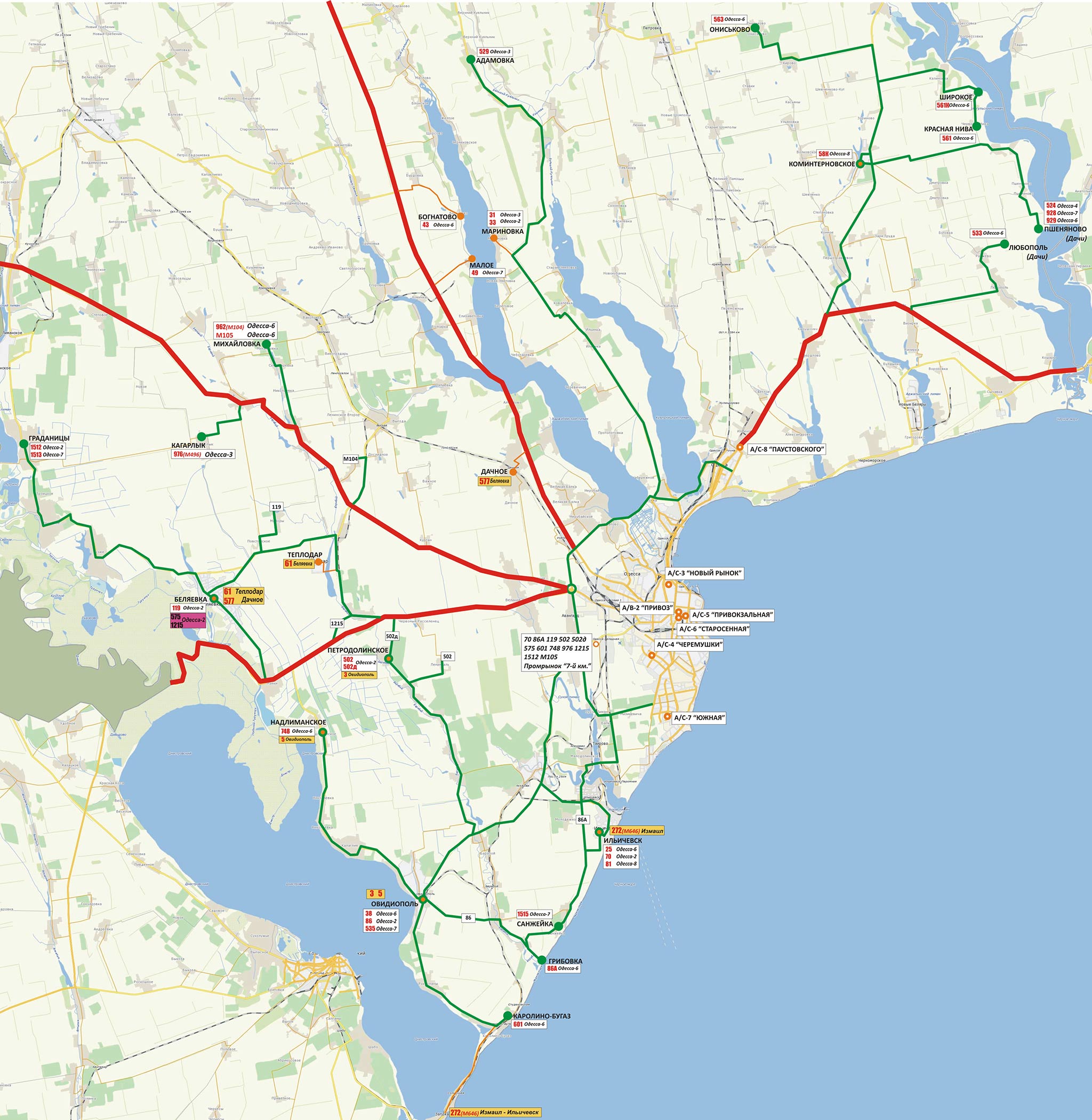 | 535 | Одесса-7 (5526) - Вильямса (26169) - ТЦ "Эпицентр" (111514) - ТЦ "МЕТРО" (25066) - Красный Хутор (64845) - Бурлачья Балка (111589) - Малодолинское (112352) - Большая Долина (111816) - Военный городок (Большая Долина) (111801) - Барабой (112343) - Овидиополь (кольцо) (112372) - Рынок (112346) - Овидиополь-2 (112347) | |
