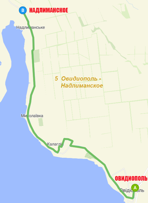 | 5 | Овидиополь - Овидиополь (кольцо) (112372) - Калаглия (112353) - Николаевка (112356) - Надлиманское (112357) | |