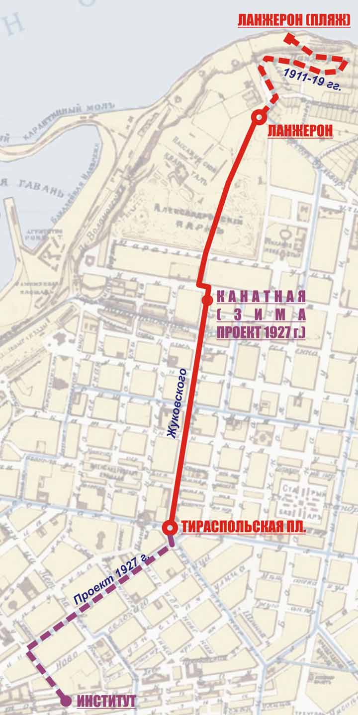 По первоначальному проекту линия проходила от Тираспольской пл. до пляжа Ланжерон через Александровский парк, частично используя пути временной линии 32 "Выставочная". |