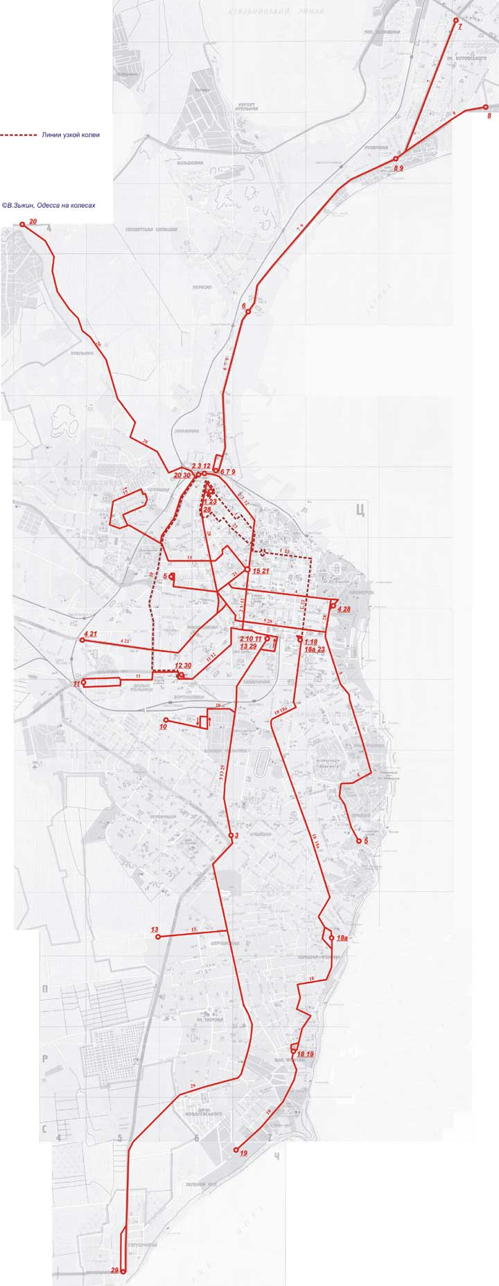 Ж.д.вокзал - Старосенная пл. - Водопроводная - Люстдорфская дорога - Чубаевка - Дерибасовка - Дача Крамаренко - Красный Хутор - Люстдорф |