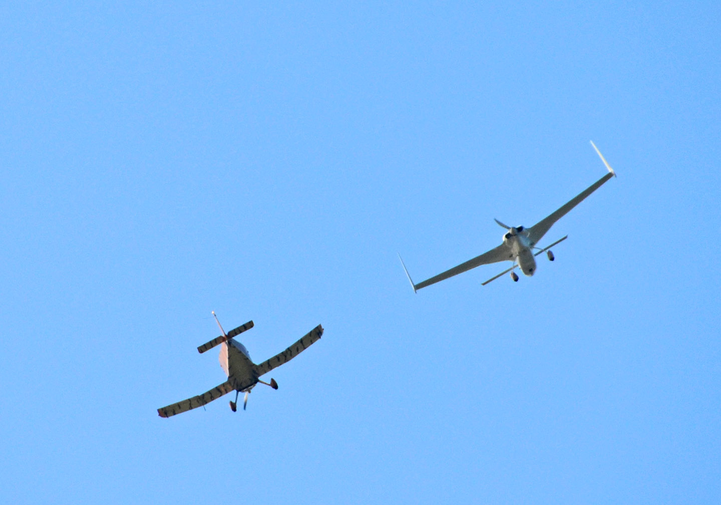 Testing of the pilotless Merlin Labs aircraft (right) Spotter/guide plane on the left |