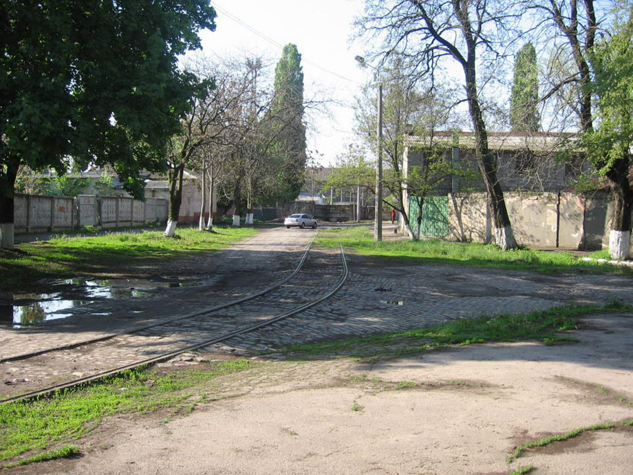 Первые два корпуса депо до 2005 г. занимал вагоноремонтный завод, в настоящее время проданный для других целей. ВАРЗ переехал на Товарную. На заднем плане - здание КП "Одесгорэлектротранс". |