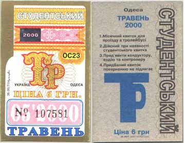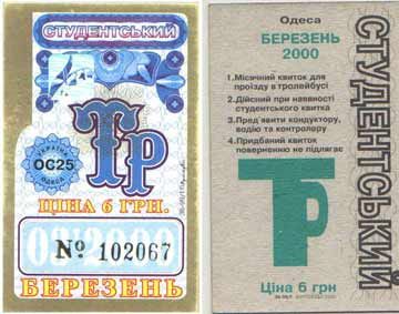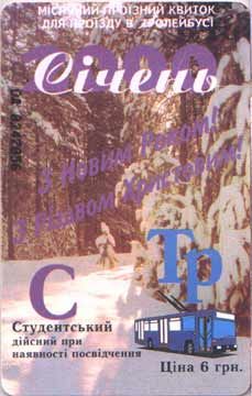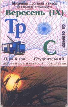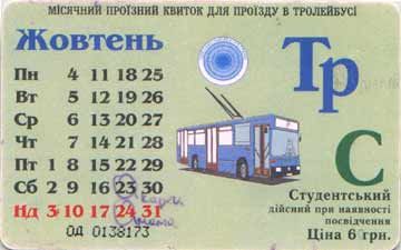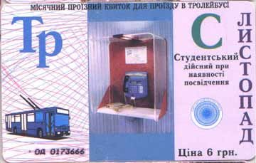 Ученические проездные билеты на троллейбус (картон, лицевая сторона)
