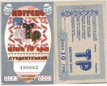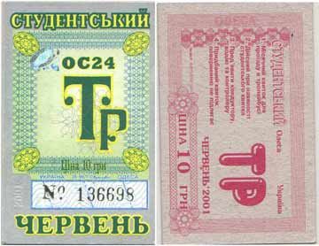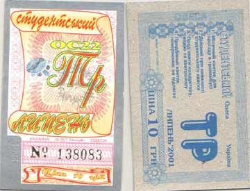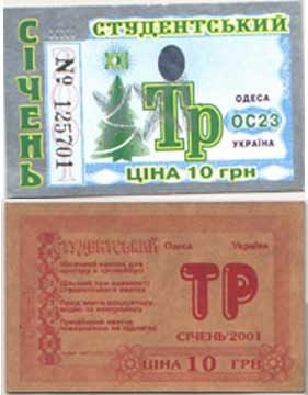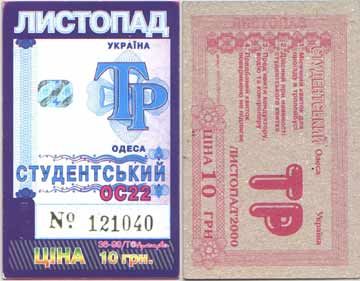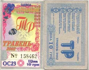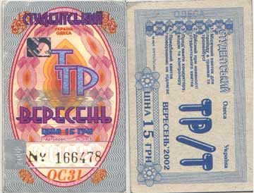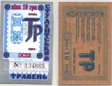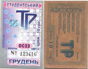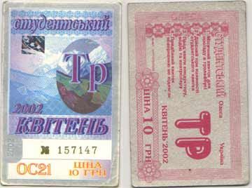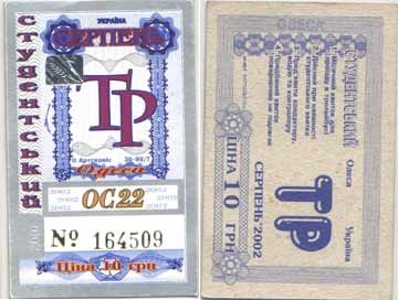 Студенческие проездные билеты на трамвай и троллейбус (картон, лицевая и обратная сторона)