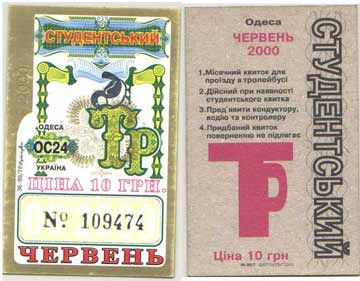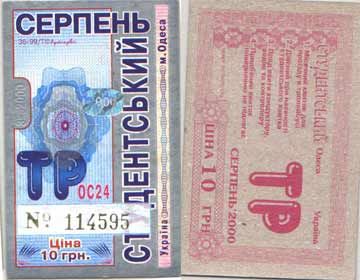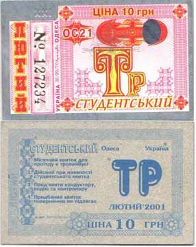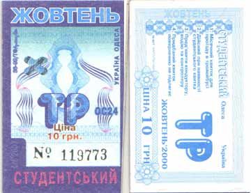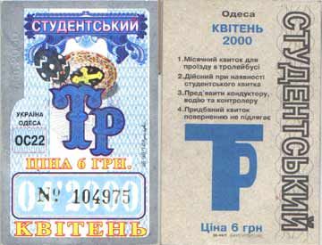 Ученические проездные билеты на трамвай и троллейбус (картон, лицевая сторона)