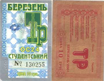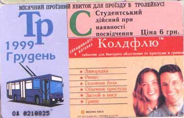 Билет на проезд в трамвае и троллейбусе (с рекламной акцией супермаркета "Таврия-В") (бумага)
