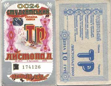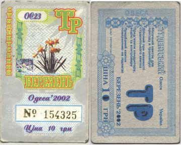 Студенческие проездные билеты на троллейбус (картон, лицевая и обратная сторона)