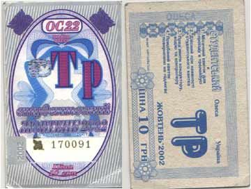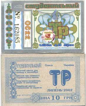 Билеты на проезд в трамвае и троллейбусе (бумага, 2002 г.)