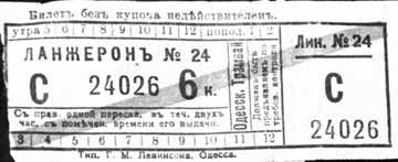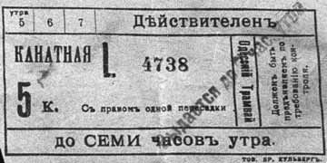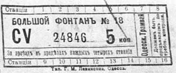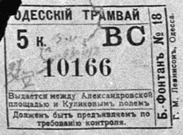 Билет Анонимного общества Одесских трамваев стоимостью 5 коп., 1916 г.