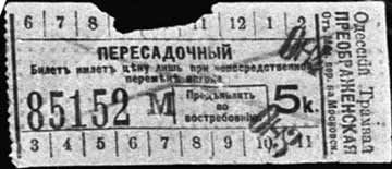 Пересадочный билет с линии "Ришельевская-Херсонская" на линию "Преображенская" до моста.
