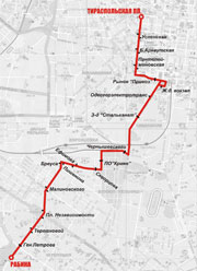 | Евдокимовская - Пишенина - Молчановская - Косовская - Больница Красного Креста - Водопроводная - Чумка - Мечникова - Старое Кладбище - Преображенская - Тираспольская пл.