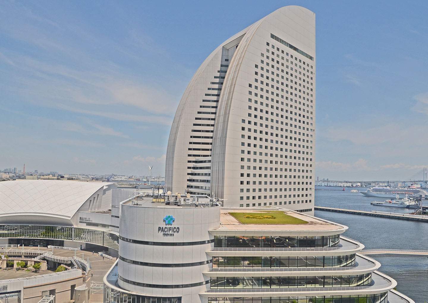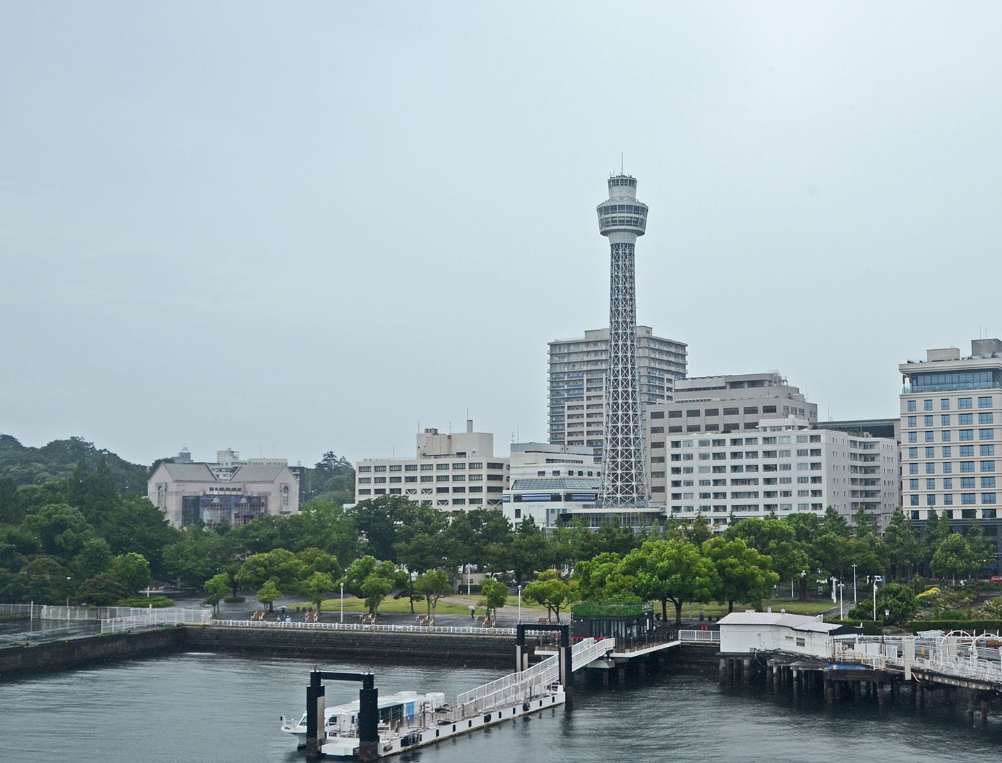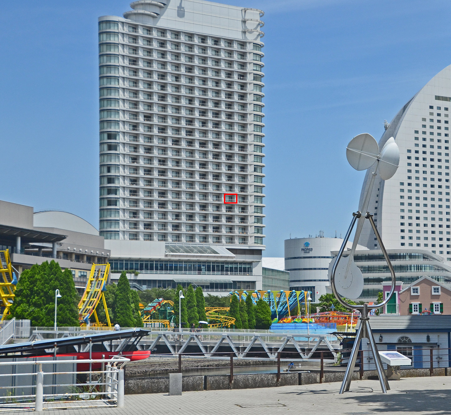 White Flower Statue and Yokohama Bay Hotel Tokyu (Highlighted is my hotel room)