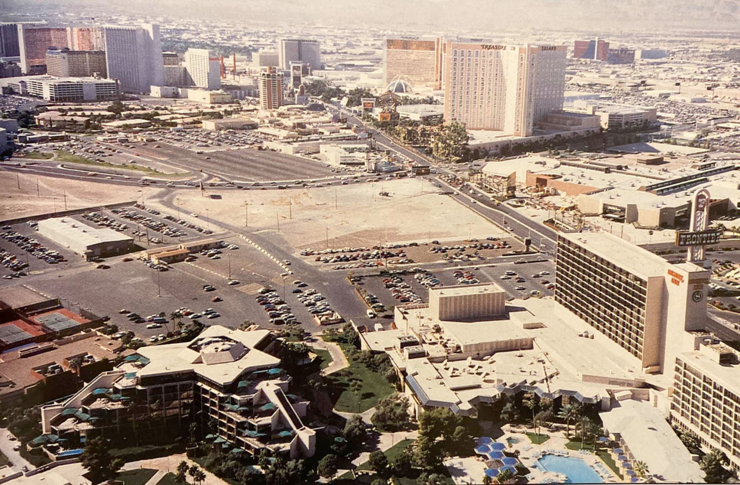 | Another photo that's impossible to duplicate. From that vantage point all view to the south is blocked by Octavius and Augustus Towers of Caesar's Palace. Photo Robert Paluzzi, 1985. |