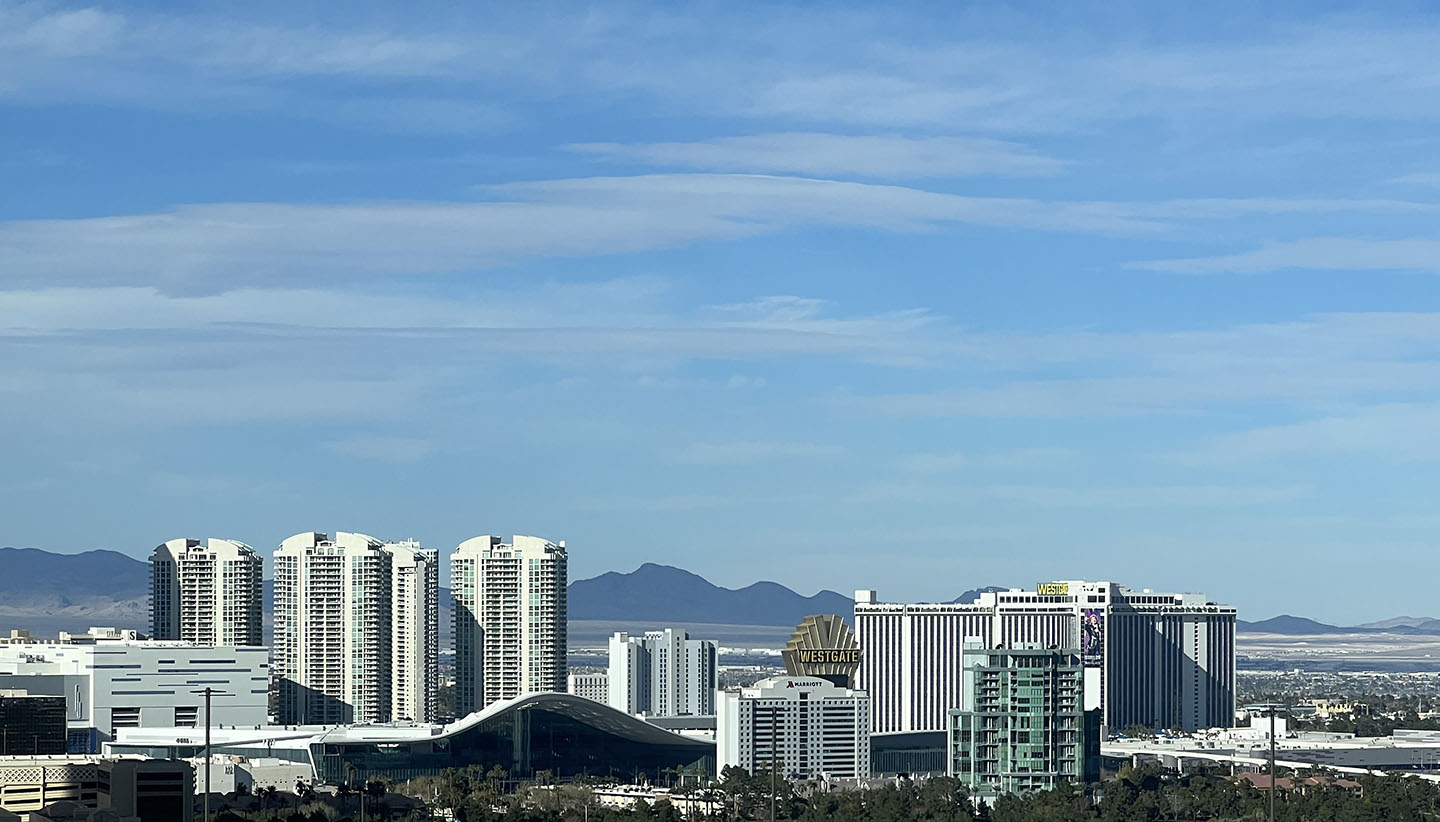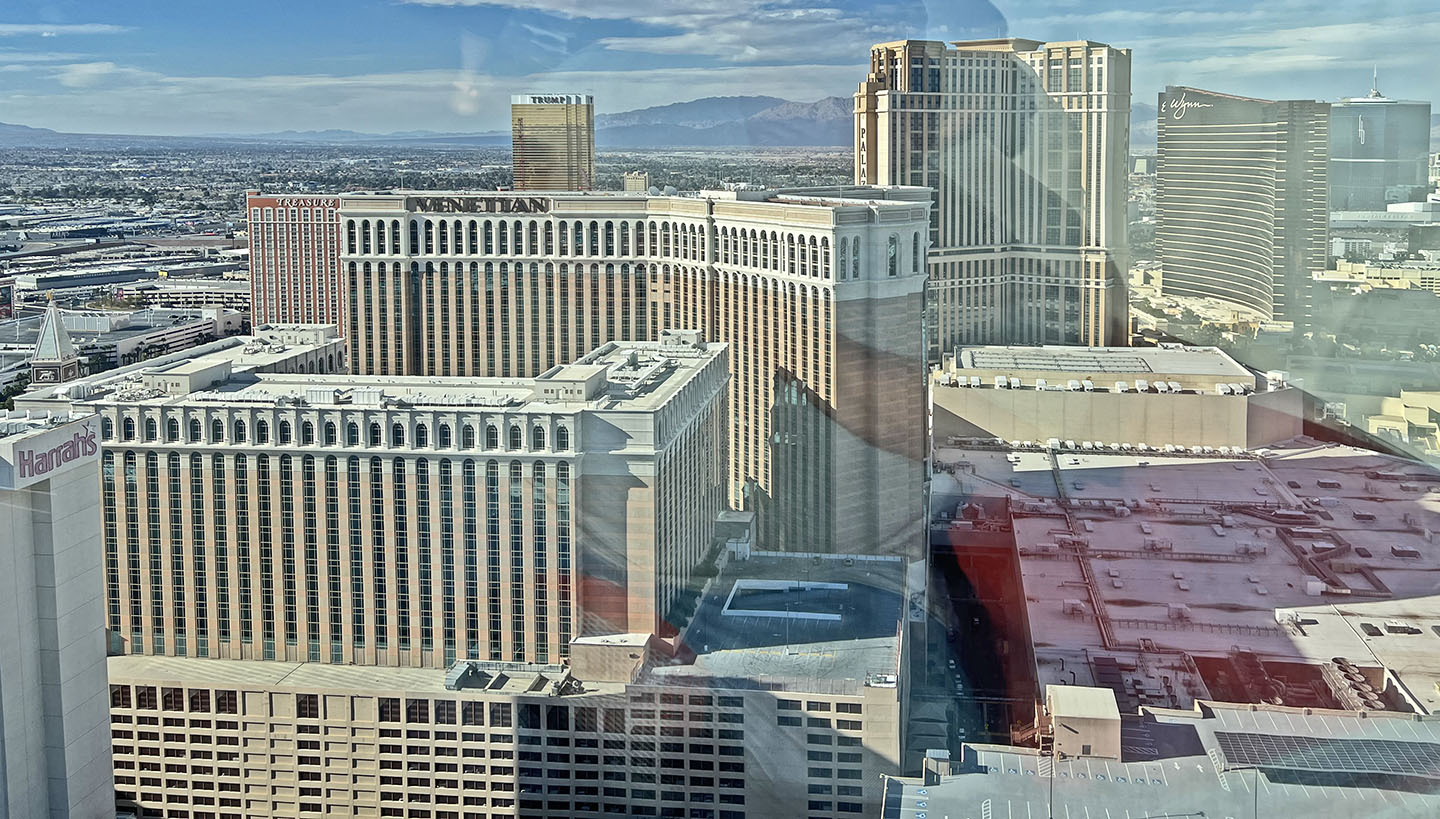 Now continuing south - almost from the edge of old photo - and we see part of the Flamingo, Horseshoe/Bally's, Paris, Planet Hollywood and MGM Grand. On the west side - Bellagio, Cosmopolitan/Aria/Vdara, Park MGM, New York New York, Luxor, Mandalay Bay and Delano. And, of course, High Roller - the tallest ferris wheel in the world. |